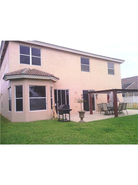 Large Beautiful Home in the well kept confines of Monaco Cove at Sunset Lakes. 4 Bedroom plus Studio & 3 Bath (1 downstairs). 2 Walk in closets in master. Spacious kitchen with plenty of cabinets & counter space with a center island for entertaining. Brea kfast Nook. Large family room. Tile thru out downstairs and wood floors upstairs. Great view of the Lake as the property sits on the "T". Plenty space for a pool. Open porch ready for a BBQ. Community Pool and Clubhouse. Near to schools & shopping.
