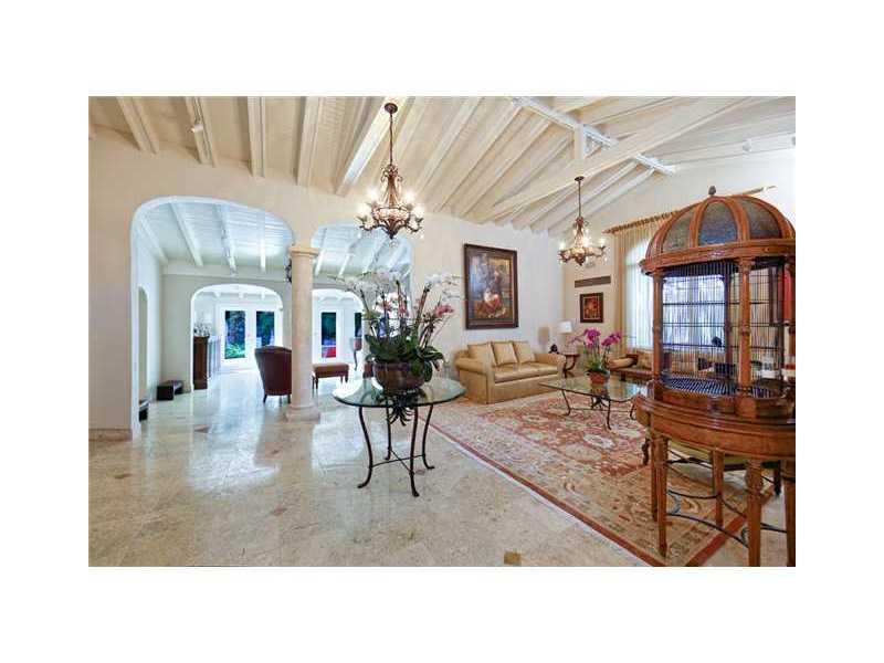 South Seas Shangri-La tucked in gated, bayside Grove neighborhood. The 1920s-era restored estate exudes old Hollywood glamour & tropical splendor. Lavish landscaping w/mature trees & water elements. Expansive windows & doors, travertine & hardwoods set th e indoor stage. Cathedral ceilings in living rm & detached master sanctuary. Formal dining rm & family rm w/pool views; eat-in kitchen w/top-tier appliances; master suite boasts His/Hers walk-ins & spa shower. Five-star, resort-style luxury & tranquility.