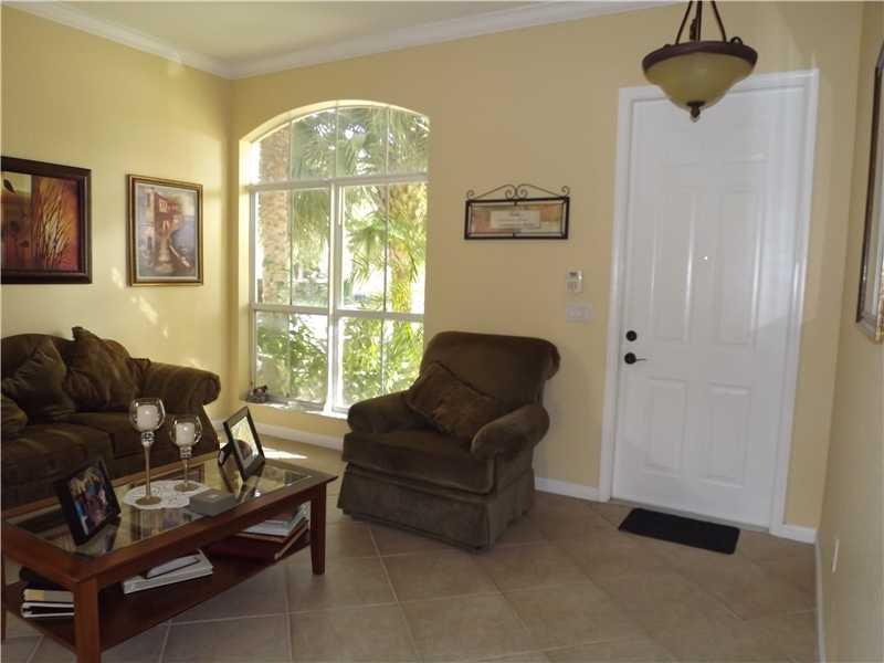 Great oportunity to get this beautiful home in a desirable gated community in Miramar. Ceramic and carpet flooring. Crown molding. Wood cabinets, open terrace from the master bedroom. Excellent condition.