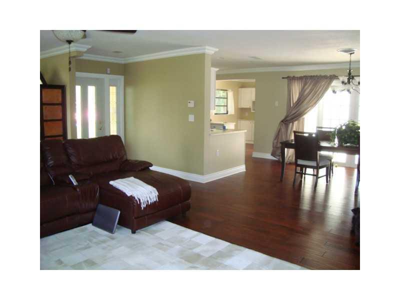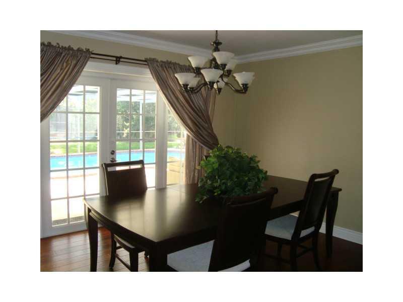 NOT A SHORT SALE! NOT BANK OWNED! Lovely corner, Single Family Home, 3 bedrooms 2 baths, featuring upgraded wood flooring throughout, crown molding, newer appliances including newer water heater and A/C. Roof approximately 6 years old. High impact Fr ench doors in the Dining area which open to the beautiful, recently redone screened pool. Shutters included. Garage can accommodate 4 moderate size cars! Great community-NO HOA! Spacious lot! Home sits on the cul-de-sac! A must see!