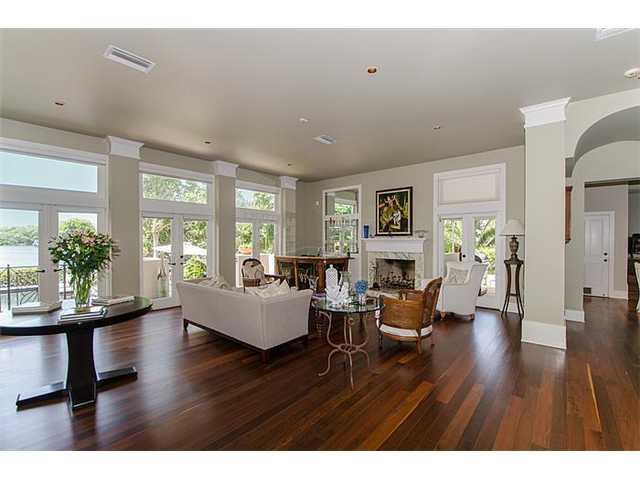 Neoclassic Modern Waterfront Italian Villa with 4BR/5.5BA. 43ft of protected dockage, 5 min to Biscayne Bay w/o bridges. Exclusive gated and guarded community. Beautiful vistas throughout. 40ft heated pool, Brazilian Walnut floors. Wonderful light & acous tics, fireplace, Butler's pantry, steam shower, Jacuzzi, marble/onyx finishes in master bath. Chef 's kitchen w/granite and top line stainless steel appliances. Large 5th room w/full bath & multi-purpose potential. 3 upstairs bedrooms have outdoor patios.