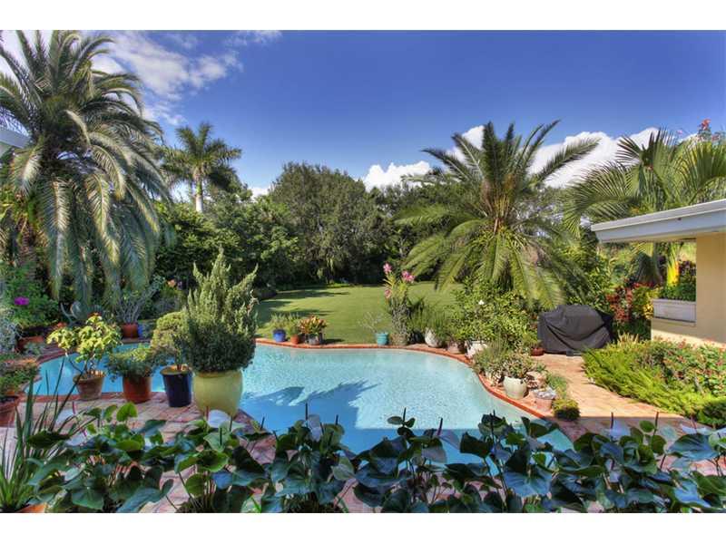 Own your own Tropical Paradise! Charming mid-century home, wood floors throughout,formal living room,formal dining room,large family room with fireplace connecting to covered patio ideal for entertaining.Large split master bedroom suite with double sided fireplace and two walk-in closets. Fourth bedroom or den. Eat-in kitchen and breakfast bar.Impact windows. Professionally landscaped 47,044 SF Bermuda grass lot. Home in fine condition and lot supports unlimited potential. Pinecrest Elem. A MUST SEE!