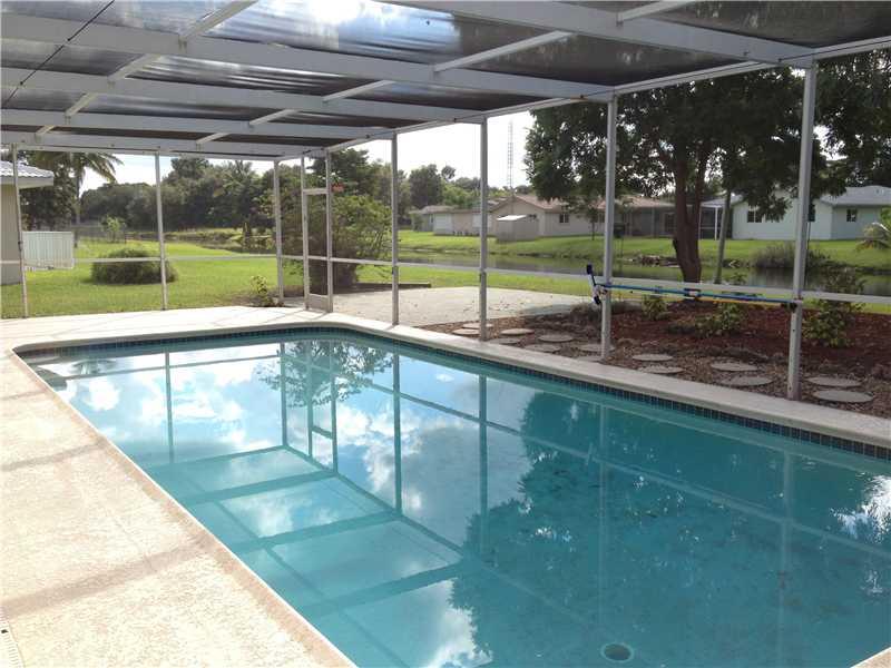 Gorgeous Waterfront Pool Home in great friendly neighborhood. 4/2 W 2 car garage & separate laundry room. Totally Renovated with brand new gleaming porcelain tile throughout, new carpet in the bedrooms, new stainless steel appliances and granite counter t ops with beautiful wood cabinets in large eat in kitchen. Master has beautiful cabana bath with office adjoining master. Huge Fl room with beautiful French windows and doors overlooking the tranquil setting of the sparkling pool and water. This is a gem!