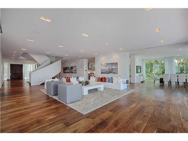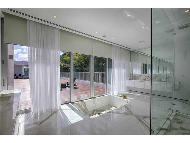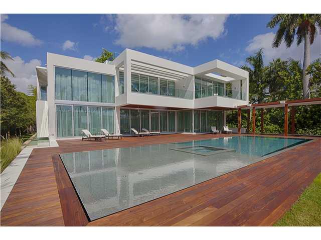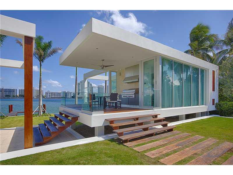 This waterfront, uber contemporary masterpiece bespeaks of modern luxury in a clean & sleek form. Tahitian Pebble stone driveway, along with Dominican Coral Stone entryway floating over flowing ponds highlight the exterior. Anchored by American Black Wal nut flooring, the interior is a triumph of sophisticated design and incl. soaring ceilings, elevator, theatre, gourmet kitchen w/dumbwaiter to master suite, 1,800 SF master w/ sep. private 2nd floor pool, gym, spa, rooftop deck, guest house & cabana.