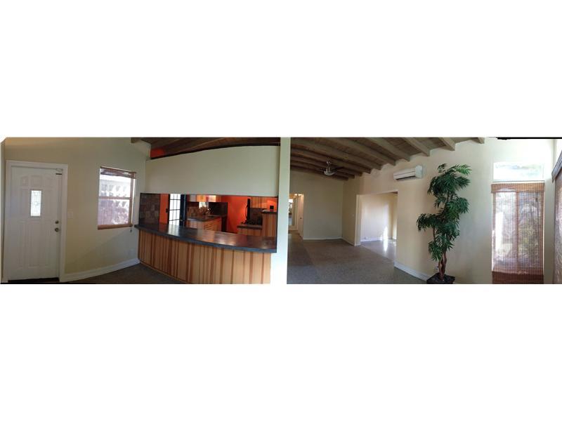 Bright, airy two bedroom two bath open plan with beautiful beam ceilings. Original, well maintained terrazzo floors make this home cool in any weather. Kitchen is made for gourmet meals and entertaining. Yard is fenced with irrigation system, storage s heds and room for all the projects. This property has a specimen Shaving Brush tree (Pseudobombax Ellipticum) that cools major portion of property and flowers beautifuly in the spring. See this home today your client will love it.