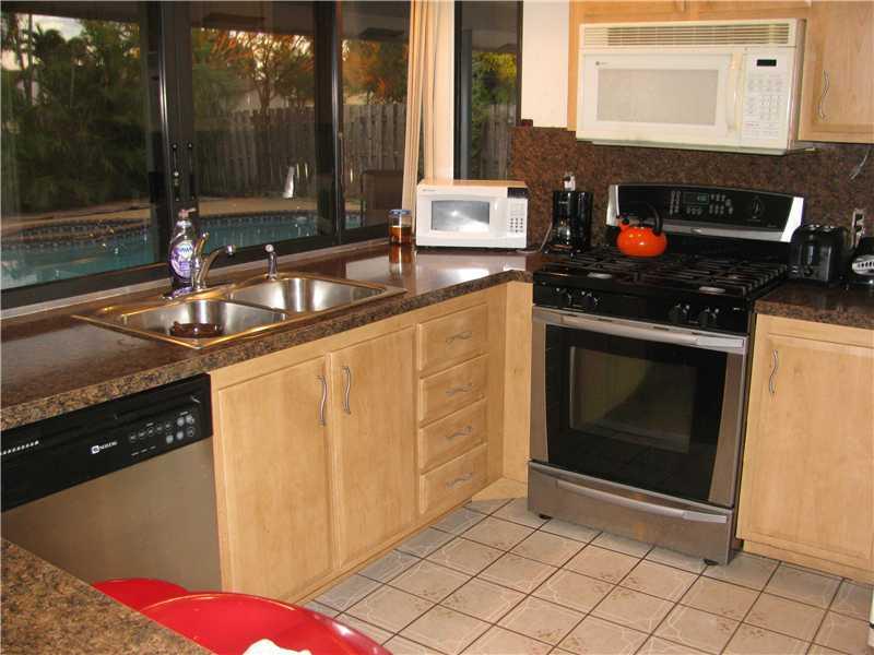 Home is a true 4 bedroom with 2 car garage, hurricane shutters, built in 80's with vaulted ceilings, fenced in yard, spa is solar heated. Tile in Kitchen and family room and wood in dinning and living. Kitchen has been updated. Stove in kitchen is gas. Great area must see this home!