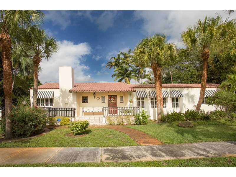Tranquil oasis: Immaculate 4 bdrm, 3 bath corner pool home features a park- like 20,000 sq. ft. triple lot. Enjoy exquisitely landscaped gardens & dark bottom lagoon pool w/ cascading waterfalls, perfect for entertaining in privacy & grandeur. Easy living in this coveted one story walled & gated estate w/ features: living rm w/ lg. covered porch, eat -in spacious gas kitchen, garage. Fall in love w/the charm, & architectural details: pecky cypress ceilings, original mosaic clay tiles. Some impact doors.
