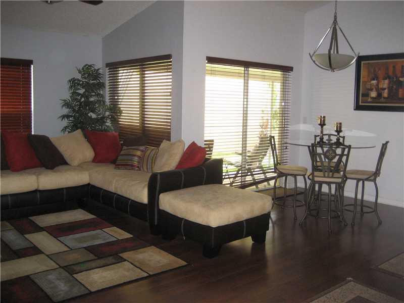 Lovely home with lots of charm and warmth! Vaulted ceilings, spacious living and dining areas, with open Kitchen SS appliances and family room. Sliding glass doors open to outside covered terrace. Split floor plan with 3 large bedrooms, 2 bath. Master ha s a Jacuzzi, large walk-in closet, freshly painted, wood floors, new carpets in bedrooms. 2 car garage. New SS refrigerator, washer and dryer. New landscaping throughout. Great location, near shops, restaurants main roads and schools.