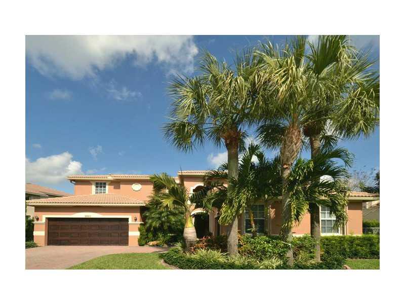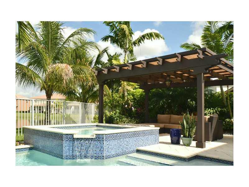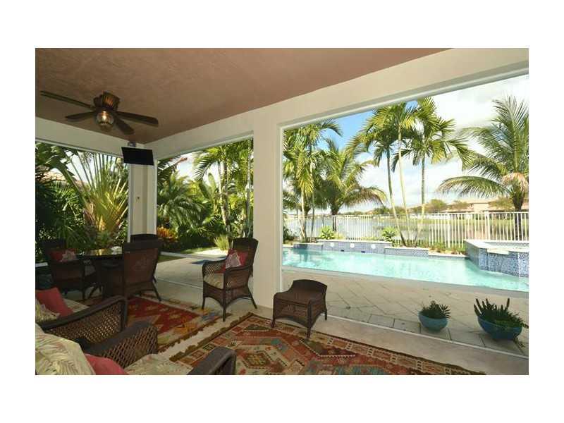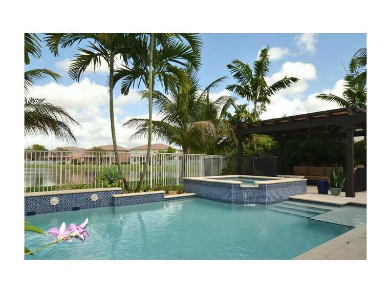 Great home features a beautiful lake view, designer tropical landscaping, heated saltwater pool w/ large pedestal Jacuzzi, deck with 16X16 Pergola covered lounge area, screened travertine Lanai. Complete privacy in this fenced large wedge lot. This house features high ceilings, tray ceiling master bedroom with columned roman tub. Brazilian cherry wood, impact windows and accordion shutters, crown molding, window treatments, and an expansive great room. Pristine condition, new paint and air-conditioning