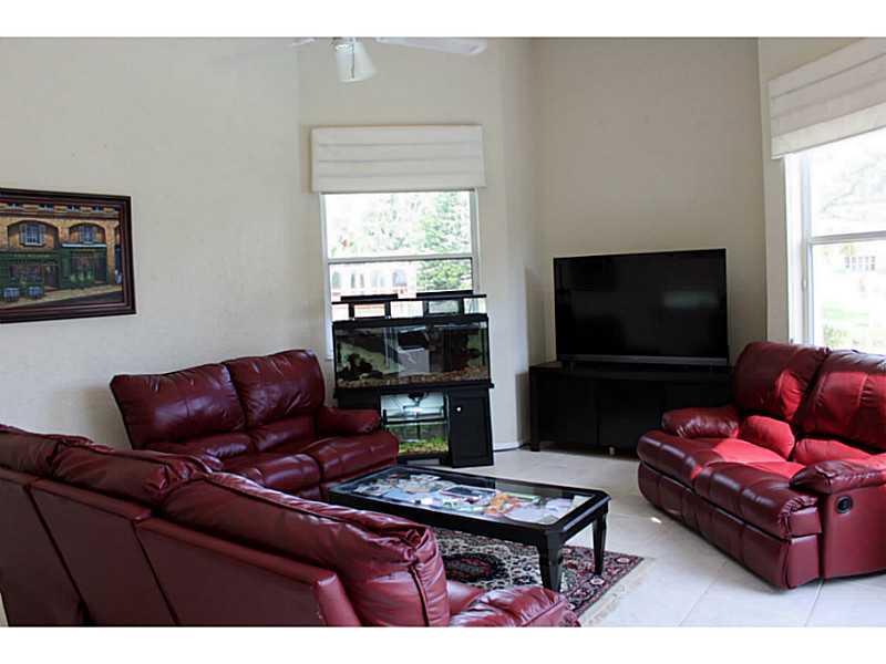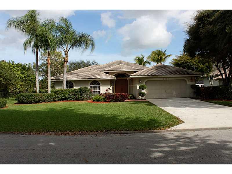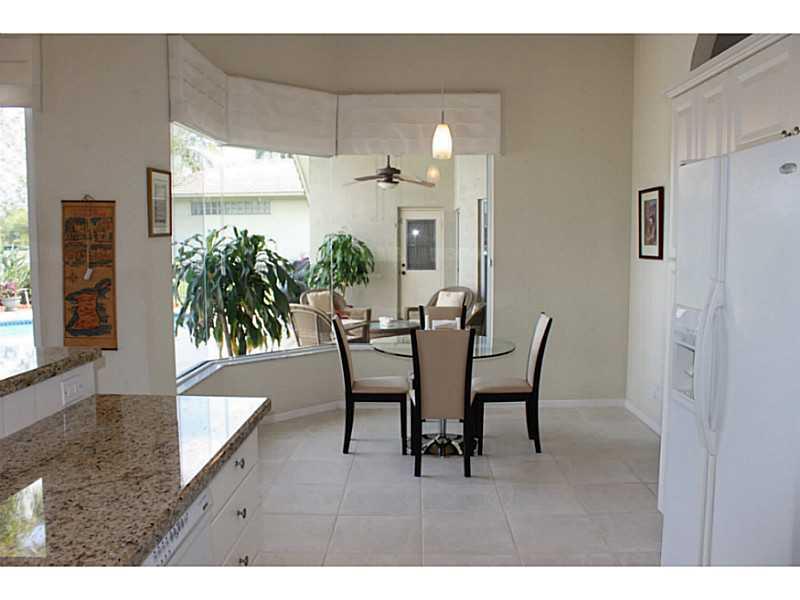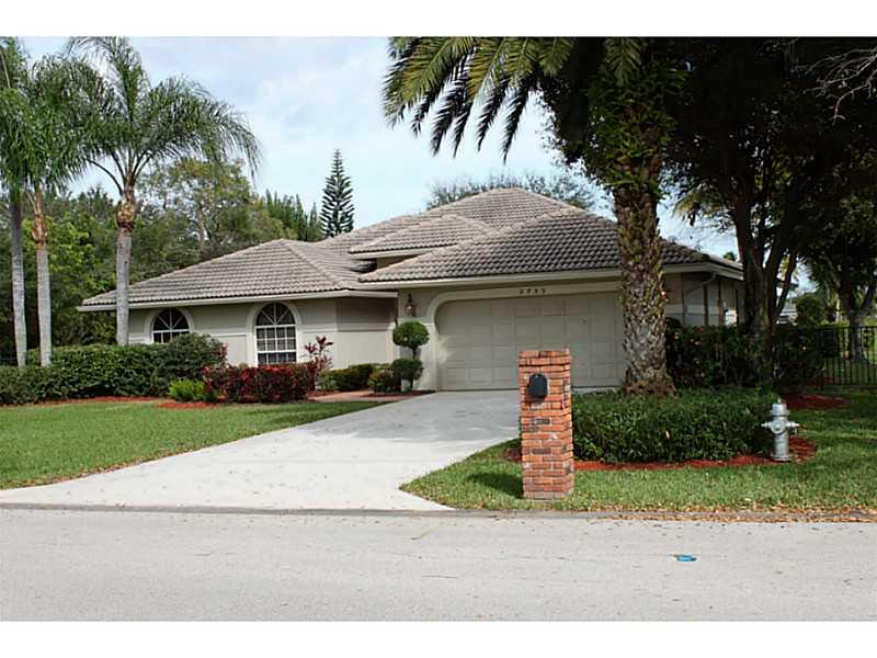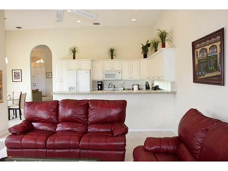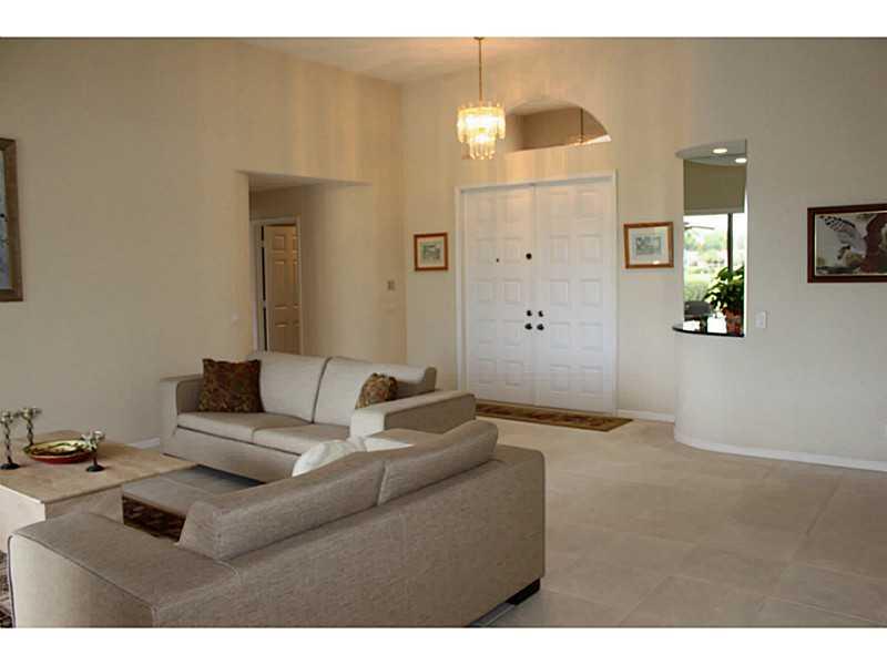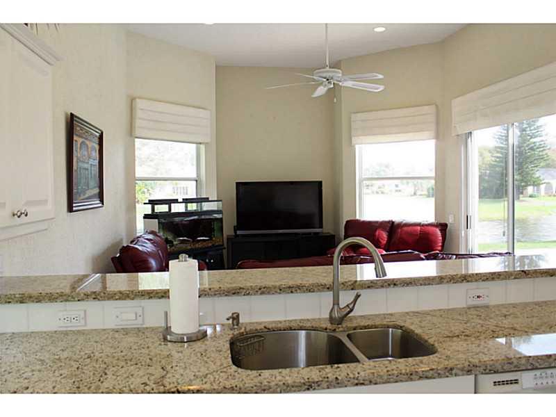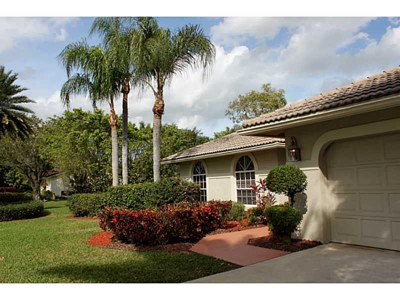 Lovely, pristine, well cared for home in Coral Springs Country Club. 12' Ceilings in Living areas. Kitchen with beautiful new granite counters, plus glass block details allows light with privacy. Expansive private views of water & a partial golf view one block over from home when viewed from pool & living areas.Split Bedrms. Newer A/C, water heater & pool filter/pump. Built in speaker system. 8' triple panel sliding doors. Security alarm. Pool has child gate. Lush landscaping. No Homeowners Association.