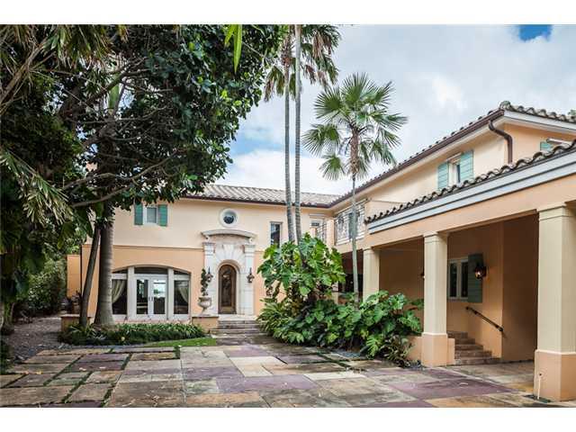 Nestled inside of Sunset Island III, this 2-story home offers all who enter it privacy & stunning views of Biscayne Bay & Dtown Miami. Updated with flair, the main home features a parlor w/ built-in bar & window bench overlooking the water, gourmet kitche n w/ top-of-the-line appliances, & library w/ custom dark wood paneling. Unique layout allows for easy entertaining & relaxation & includes a Master Suite w/ views of lagoon-style pool & bay. Lush landscaping adds vibrant colors to this special property.