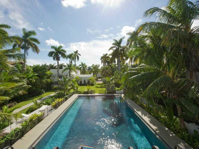 Great opportunity on guarded Miami Beach Island! Enjoy ocean breezes and water views from this magnificent Palm Island Estate. The beautifully landscaped grounds offer privacy and sit on a large 30,000 sq. ft. lot, with 100 ft. of water frontage. This cha rming home consists of a main house, a two story guest house, an oversized pool, a gorgeous two story cabana house, and a private sand beach overlooking the bay. 7 bedrooms, 5 full baths, and 2 powder rooms in total. Classic architectural