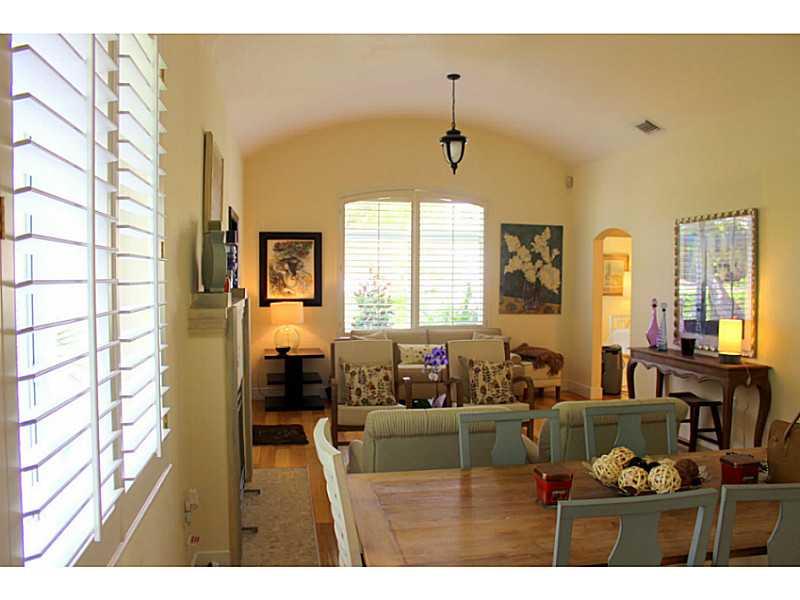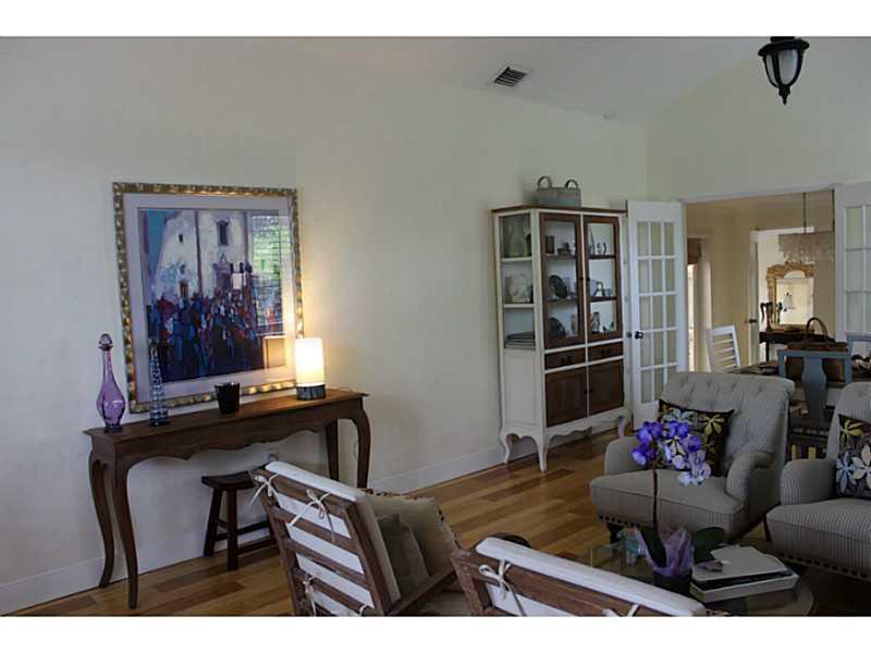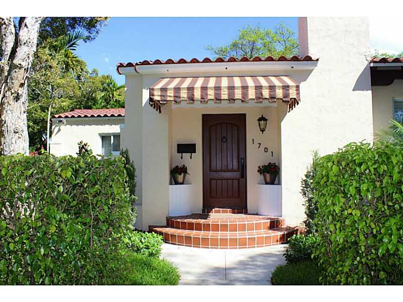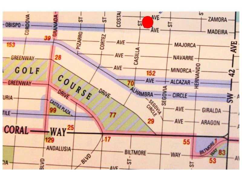 New Listing. Pristine, updated, gorgeous three bedroom/two bath home on corner lot (Zamora) within walking distance of Granada Golf Course and downtown Gables. Enter LR with cathedral ceiling, fireplace, hardwood floors. Two bedrooms and hall bath in fr ont, master suite on other side of home with separate sitting area. Small but beautiful kitchen. French doors from Family rm open to covered wood deck and separate patio...perfect for entertaining.Impact windows, new landscaping, freshly painted. WOW!!
