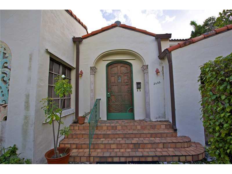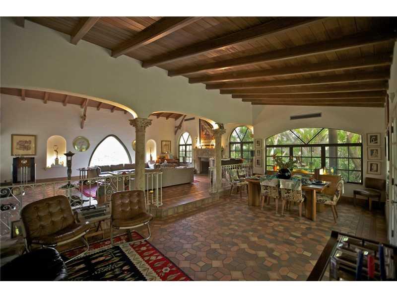 Diamond In The Rough! Designed by Architect C.K. Bayliss, this Unique Med/Deco home has soaring wood beamed ceilings in the Great Room, open to Florida room w/keystone columns. Original features include Vitrolite baths, keystone fireplace, Spanish Arabes que floors, wood floor and reflecting pond. Site on a large 15,000 +/- sf corner lot w/room for pool, walking distance to Beach, 2-car garage, lush landscape. A one of kind Gem!