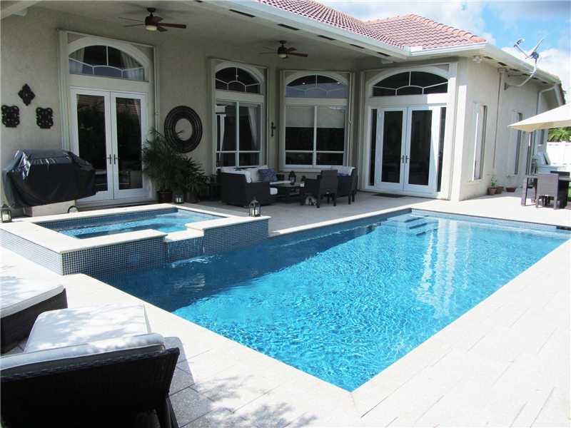 SOUGHT-AFTER "MONTEREY" MODEL IN PEMBROKE FALLS ** SPECTACULAR POOL & SPA ** EXTENDED COVERED PATIO, PERFECT FOR ENTERTAINING ** 4 BEDROOMS, PLUS STUDY THAT COULD BE 5TH BEDROOM, 3 BATHROOMS ** NEUTRAL CERAMIC TILE IN LIVING AREA AND WOOD FLOORING IN BEDR OOMS ** GORGEOUS UPGRADED KITCHEN WITH GRANITE COUNTER TOPS, WOOD CABINETS AND STAINLESS STEEL APPLIANCES ** CIRCULAR DRIVEWAY ** GATED COMMUNITY **