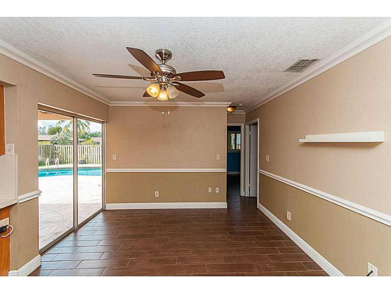 Spacious 3 bedroom 2 Bath, pool home on an oversized corner lot in a quiet neighborhood. 2 car garage with a new door, Split floor plan, master bedroom walk-in closet, large secondary bedrooms, both bathrooms have access to pool, Wood look ceramic tile th ru-out; crown moulding & chair rail; plantation shutters; accordion shutters; alarm system. Roof replaced 2008.Completely fenced yard and storage Shed. No HOA. Great Davie Schools. Ideal location close to colleges and shopping. Not a short sale or REO!