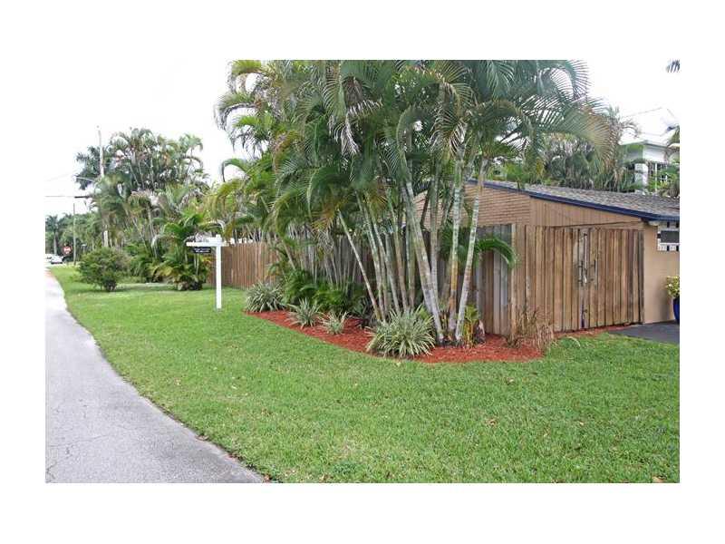 Tropical enclave of a classic Florida home with 4 bedrooms and 3.5 baths, set on an over sized corner lot. A compound hidden from the street by a wood fence, surrounds the expansive well maintained home. The home could be turn key with an optional furnitu re package. Polished tile and cement floors add to the island style of the décor complete with a renovated kitchen, new LG stainless appliances, roof and AC. Detached Cabana or hobby room and large pool are completely gated with tropical palms for privacy