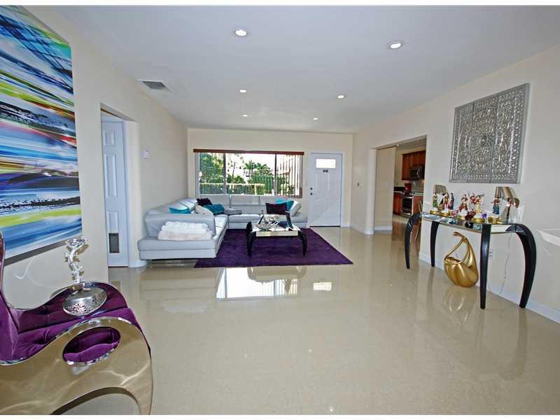 Miami Beach waterfront home in gated community. With pool, 60 foot concrete dock and boat lift. It features beautiful porcelain floors, brand new kitchen, granite counters, top of the line appliances, new high impact windows, all new bathrooms, not one de tail was spared. French doors open up to the large pool and dock area. Great location 8 min from Sobe and Bal Harbour.