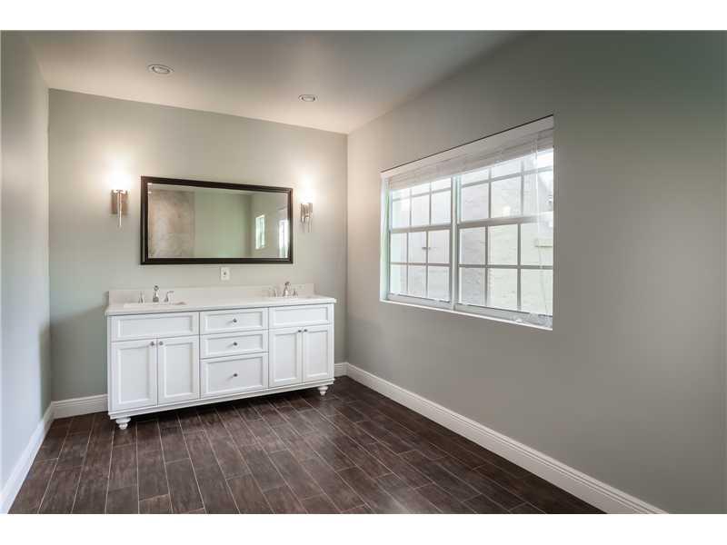This renovated Old Spanish home in Coral Gables features a formal living room with a wood burning fireplace, dining room with marble floors, new bathrooms, gourmet kitchen with granite countertops and backsplash, stainless steel appliances, and eat-in-kit chen area. The master suite is filled with natural light and a spa-like bathroom. The main house is a 2 BR/2.5 BA with an additional sitting room that could be converted to a bedroom. The third bedroom is a detached second master suite.