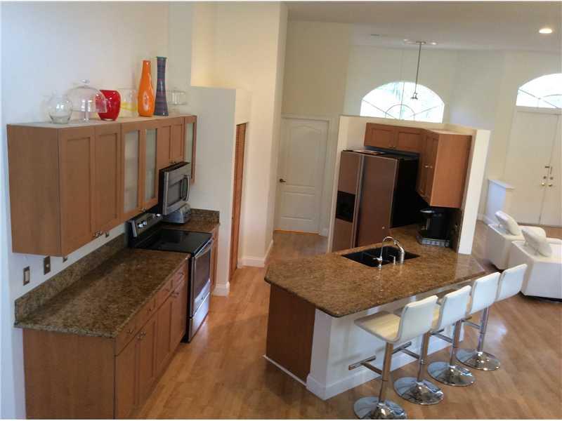 PRICE REDUCED in Weston Hills Country Club. This fabulous updated in 2009, 4 bedroom, 3 full bath triple split bedroom plan features updated bathrooms and kitchen w/breakfast area, eat-in counter, S/S appliances/granite counter tops. Double door entryway opens to bright wonderful floor plan featuring 12 foot high ceilings, showcasing tropical pool area. Formal dining/ living, huge family room, wood laminate floors(No Carpet),jacuzzi,marble tile in master. Pavered circular driveway fits 4+ cars, A+ Schools