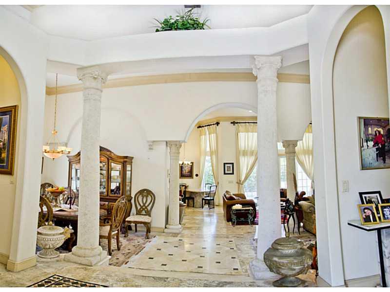 Live in exclusive Golden Beach, at an amazing value, in a beautiful Mediterranean masterpiece & experience the magnificent private beach just across the street. MUST SEE VIRTUAL TOUR. This 6/5 has gorgeous Italian marble in Country Tuscan Tile throughou t, soaring 14' ceilings, 4/4 on 1st floor, & 2/1 on the 2nd floor, open kitchen, family room, dining room & livingroom all meant to entertain. All appointments handcrafted. Yard is tropical oasis w/beautiful orchids. Dining room chandelier not included