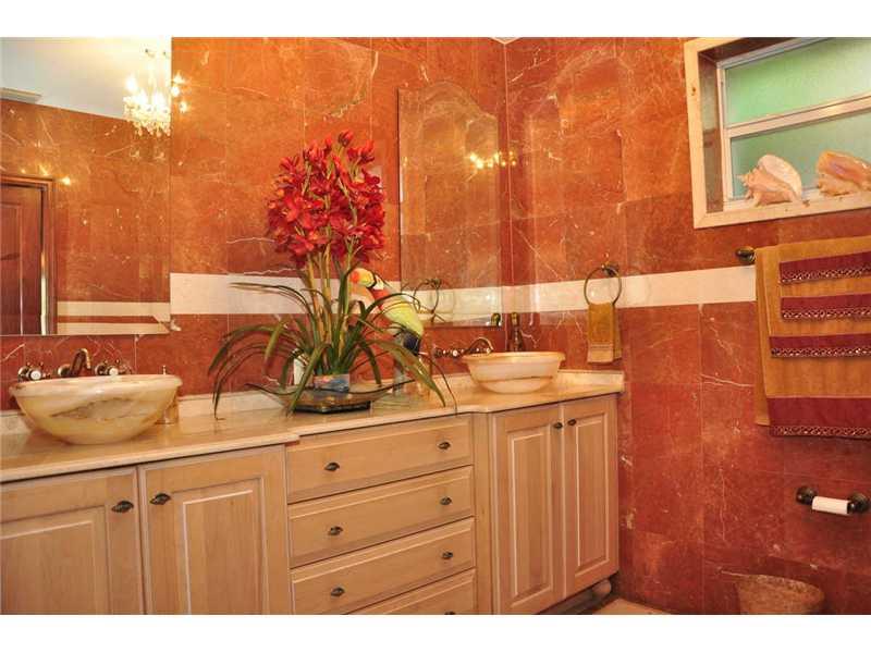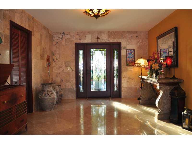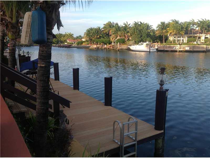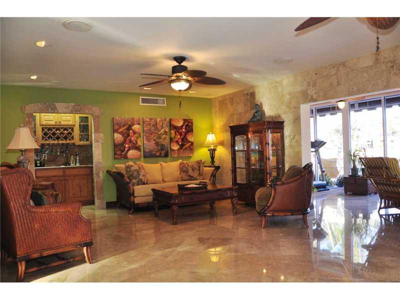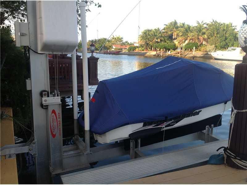Magnificent location w/ spectacular water views.90 ft of waterfront w/approx.10,000 lb jet ski & boat lift.Large 3 bed/4bath home. Master has french doors w/water views & 3 walk-in closets.Eat-in kitchen w/breakfast bar.Family room w/bar area.Formal dinin g room.Beautiful pool.Travertine floors throughout.Marble bathrooms.Elegant entrance w/tumbled marble,half-circle driveway & wrought iron, electric security fence.Surround sound in main & pool areas.Most windows impact resistant.2 car garage w/storage.