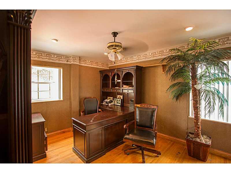 Charming 1941 Mediterranean 2 story home on rare 17,765 sq ft double lot, walled for privacy w/ electric gates & intercom & soothing indoor & outdoor fountains. 5,523 sq feet of living space w/ 6 bedrooms, 5.5 bath, 2 car garage, carport, fabulous yard, p ool, mango tree, solid mahogany doors throughout the residence. This home has tons of potential. Great family home, wonderful for entertaining. Great school district, across the street from La Gorce Golf & Country Club, + tons of storage, 3 beds upstairs.