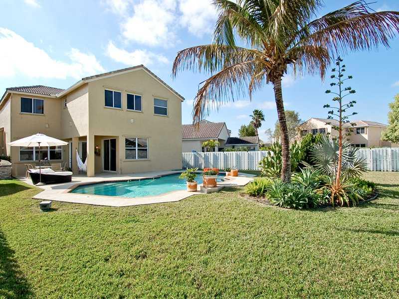 Walk in & feel at home in this bright & cheerful home on a quiet tree lined street. Large pool and one of the largest lots in the neighborhood makes this a great home. This very well maintained property has a large open feeling with 4 bedrooms + den. The Falls is a very friendly neighborhood centrally located in Weston with a 24-hr manned security gate, A+ schools and its own community pool, playground and lakes.