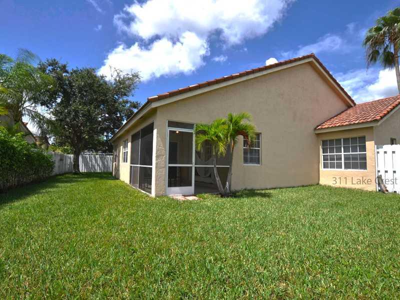 BEAUTY & VALUE. 3 bedrooms, 2 baths, 2 car garage at The Lakes of Weston. CUL-DE-SAC LOCATION Easy to enjoy! Split floor plan, charming living room with French doors opening to screened terrace, cozy formal dining room, traditional-style kitchen with stai nless steel appliances, spacious light and airy family room, magnificent master suite with ample space, master bathroom with double sinks, tub and shower large enough for two to begin the day. A+ SCHOOLS. Big yard, and ready for your own makeover.