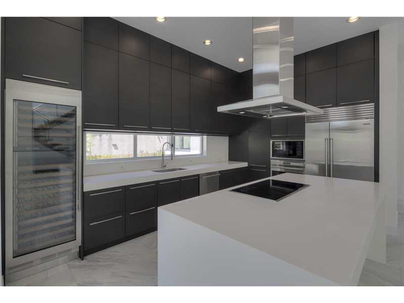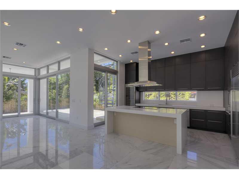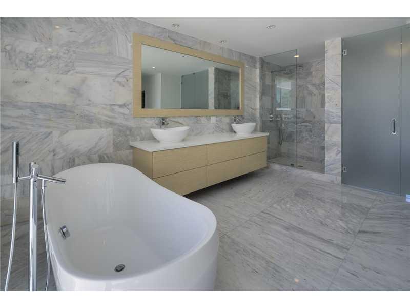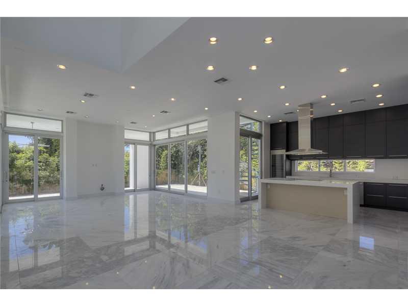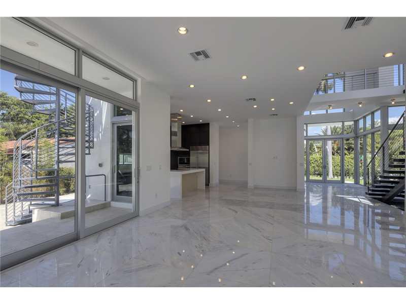 Gated exclusive Hibiscus Island, Miami Beach. Brand new ultra-modern design luxury home w/ top of the line finishes & pool with limestone flooring. Completed May 2015; Foyer entrance has dramatic 26 ft. ceiling. 11 ft. ceiling throughout home. Wall to wal l 36"x 36" Italian Carrara marble floors, 4 beds/4 baths upstairs with water views from terraces & custom walk in closets, 1100 sq.ft. lighted roof top terrace & incredible panoramic views. 1 bed/1.5 baths downstairs. Fabulous indoor reflective pool.