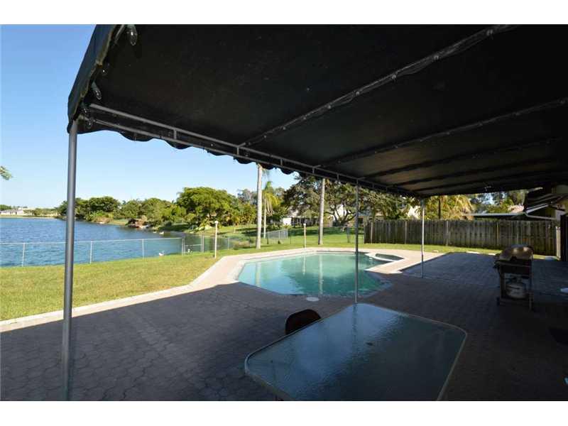 3 Bed 2 Bath W I D E Lakefront/Pool home in the HEART of Davie! Circular Drive, Roofed/Screened Front Porch-House Roof=2002, Fenced Yard! ACCORD SHUTT-Heated Pool! HUGE Paver Patio w/Electric Awning! Newly remodeled Kitchen with Granite Counters and Tile Backsplash! Fabulous Custom Designed Cabinetry w/Fluted Crown and Base! Matching BONUS Granite/Cabinet Filled Buffet! Under Cabinet Lighting! Mirrored Walls in Dining Room! and Entertainment Area-Wood Floors in Master and Bed #2-Carpeted 3rd Bedroom-