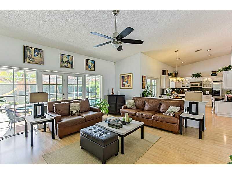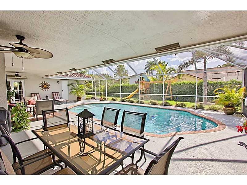 Must see this fabulous,immaculately kept 4beds/2.5baths pool home in highly sought after neighborhood in Coral Springs. Beautifully designed open floor plan great for entertaining. Fully upgraded w/granite counter tops and SS appliances, wood floors throu ghout. Lots of storage, roof 6 yrs. old,A/C replaced few months ago, hurricane shutters,security system. Big screened in pool and huge backyard. Shows beautifully, just bring your toothbrush and enjoy!No HOA fee!Great school district! It will not last!!