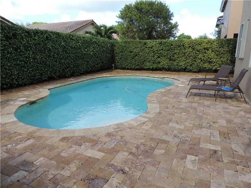 This lovely 4 BED / 2 ½ BATH, 2 Car Garage, with a POOL is located inside SANTORINI ISLES AT VIZCAYA. The home features an open floor plan, vaulted ceilings, ceramic tile flooring and a nice kitchen with granite tops. Features include crown moldings, ce ntralized vacuum system, pool salt system, roman tub, walk in closets, laundry room and kitchen pantry. 24-HOUR ROVING SECURITY AND ALARM MONITORING ALL INCLUDED IN H.O.A. FEE. This very well kept home is a MUST SEE!