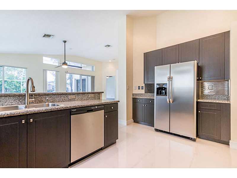 LOOK NO FURTHER THIS 3/2 POOL HOME IS PERFECTLY REDONE TO SATISFY EVEN THE PICKIEST BUYER. SITS ON A GREAT LOT WITH WATER & FOUNTAIN VIEWS. FULLY REMODELED W /PORCLAIN TILES, LAMINATE IN BEDROOMS, GRANITE , WENGUE COLOR CABINETS, SS APPL, FRESHLY PAINTED W KNOCKDOWN, BRAND NEW BATHROOMS. 3D DECORATIVE ENTRANCE WALL, NEW LIGHTING AND FANS THROUGHOUT, CLOSET BUILT INS AND LAST BUT NOT LEAST ACCORDIAN HURRICANE SHUTTERS.. EXTREMELY SPACIOUS LAYOUT W HUGE MASTER AND HUGE FAMILY ROOM, SPLIT BEDROOMS .