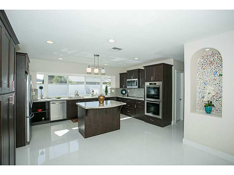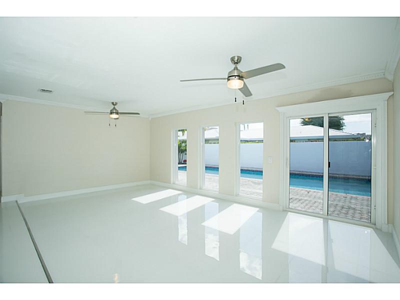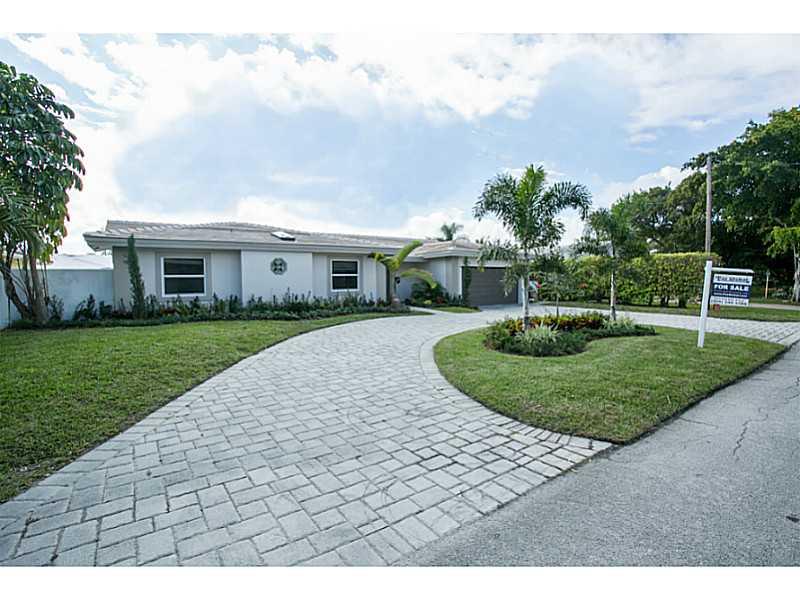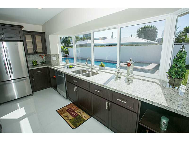 Completely renovated 3/3bath home in Ft. Lauderdale. Custom wood kitchen cabinets. Granite counter tops & stainless steel appliances. Baths have high-end vanities w/granite & quartz counter tops & glass enclosed showers. White-glass porcelain & laminate w ood flooring. Impact resistant glass windows. Large study/library/den area. Professionally designed landscape & new roof. Laundry room. Paved driveway & patio. Lap pool, redone w/glass tiles, Jacuzzi tub. Security. Walk to fine dining, shopping, & beach.