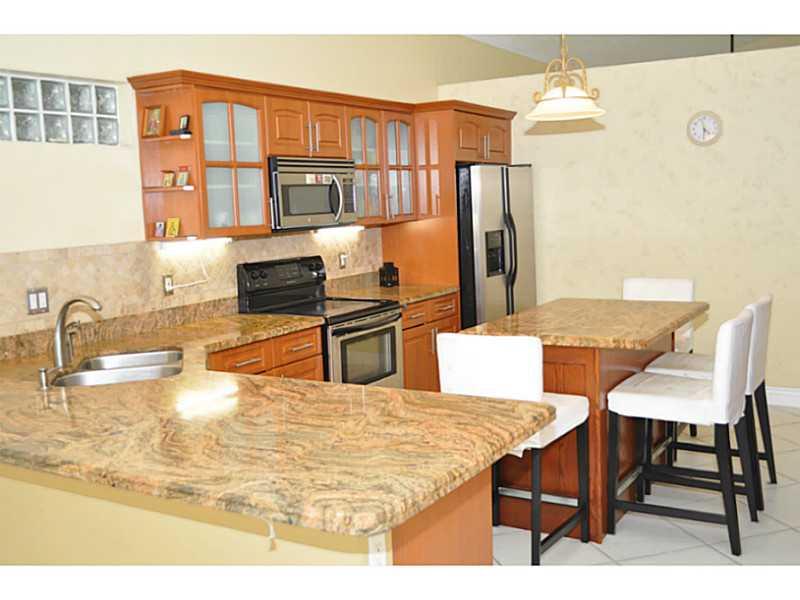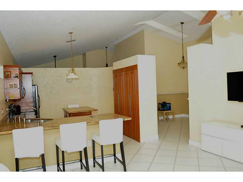 Beautiful well maintained single family home in Sunrise. Just move right in. 18" tile throughout and laminate floors in bedrooms, newer eat in kitchen with an island, granite counter top and pantry. Newer A/C 2013. Roof replaced 2011, hurricane rated sky light and shutters. High vaulted ceilings with open floor plan. Great home located in a great community with community pool. Minutes to Sawgrass Mall, restaurants, shopping and great schools. Fast and easy access to all major routs RT595, RT75. FLTurnpike