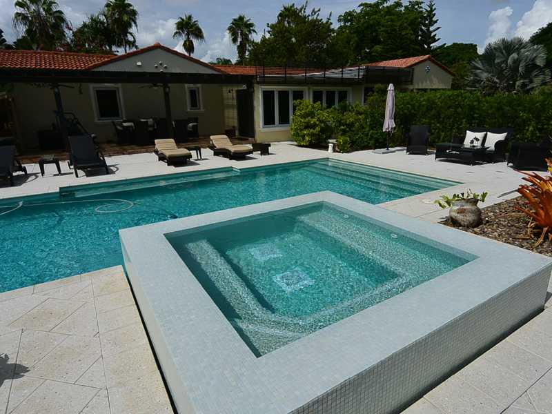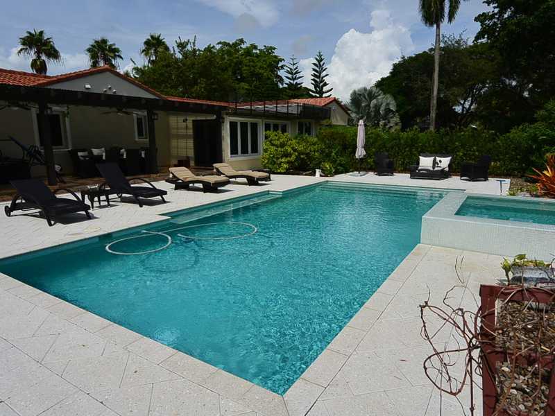 Exquisite remodeled home on a beautifully double corner lot in the lakes district. Marble floors throughout,large family room opens up to a spectacular view of the new heated CO2(carbon) pool area with an infinity heated spa that overflows in the pool. In frared sauna under the covered pergola. Water system, filter and conditioner in house. Ionized water in the kitchen(life source water). New AC, plumbing, electrical and roof. Custom built impact windows and doors. Alarm and camera system. Fenced in yard.