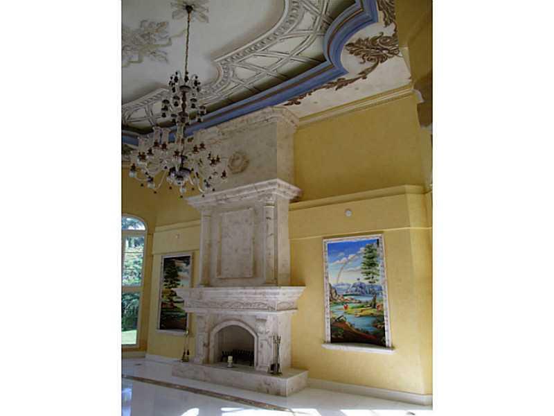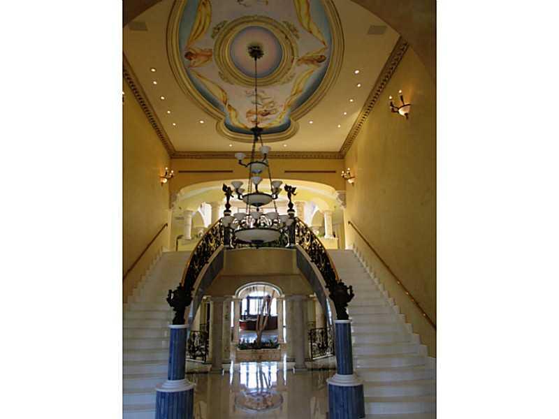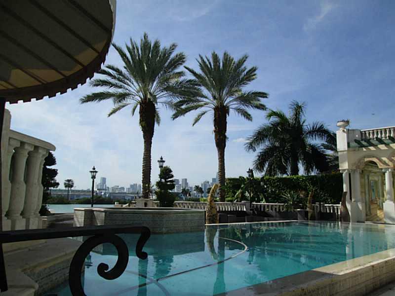 Mediterranean Palazzo with downtown Miami skyline views. This 11 000 SF house in gated Palm Island is full of details. Build in year 2000 in oversized 30 000 SF lot with 100 LF on the water with private dock. Double staircase entry, glass ceiling atrium, two story high marble fireplace, hand painted ceilings, marble and wood columns, elevator, sauna, summer kitchen, rooftop area, maid's quarter, generator, lighting controls etc. New roof with warranty. All 9 A/C units renewed. House painted outside.
