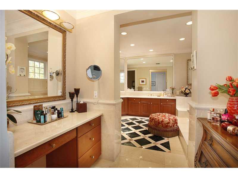 Beautiful, palatial home in gated S Gables cmnty on peaceful lagoon & quiet cul de sac. Marble/wd flrs, impact wndws/drs, formal liv & din rms w/coffered ceilings, fam rm, wet bar & add'l family rm upstairs are just a few of the special features of this h ome. Exceptional master ste incl office/gym, elegant bath w/double sinks, spa tub & sep shower. Outside the covered patio & summer ktchn prove a perfect spot to enjoy the pool/jacuzzi & the gorgeous, natural hammock leading to dock, beach area & lagoon.