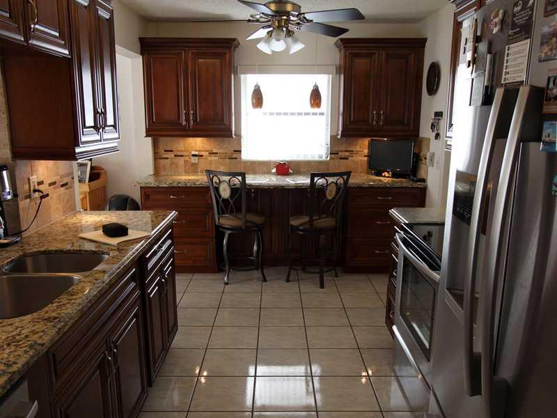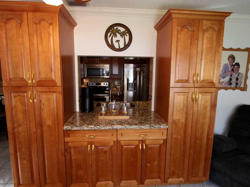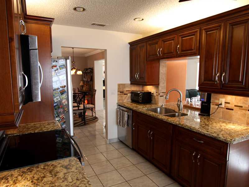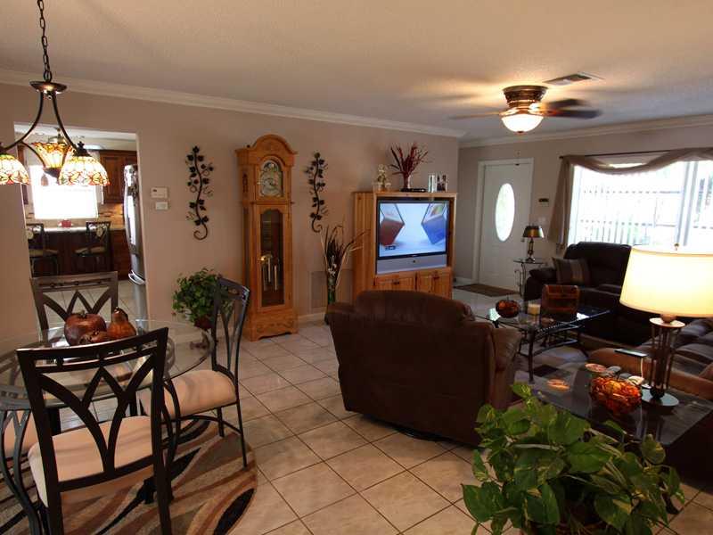 Exquisitely remodeled home, crème de la crème! Designer kitchen- granite & solid wood tongue-n-groove cabinets with easy glide pullouts, matching Whirlpool stainless appliances, tile backsplash unique breakfast bar and extended granite & maple Fla. rm. bu ilt-in entertainment unit. Crown molding, recessed & custom lighting, upgraded baths with steam shower in master, hurricane rated entry & garage doors and more! Lush landscape with tiled front porch & back patio Too many features to list - must see!