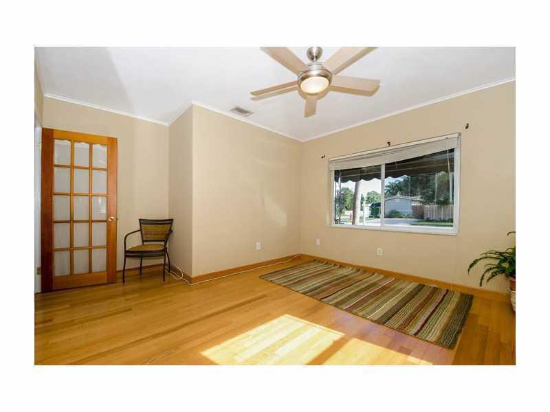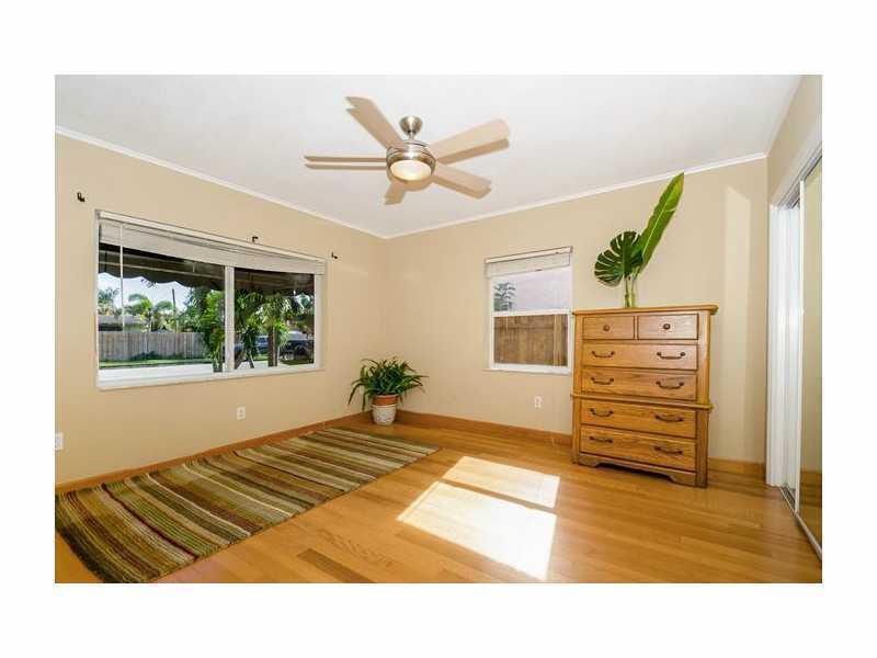 Beautiful 3/2 in desirable Poinsettia Heights. PRICED TO SELL QUICKLY & ONLY 2 MILES FROM THE BEACH! Corner lot, open floor plan, French doors leading to your covered patio & lush back yard. Large fenced in corner lot great for kids, pets & plenty of room for a pool. Wood flooring throughout, tumbled marble in the kitchen, laundry room off the kitchen. A/C & kitchen appliances are less than 5 years old, exterior of the home has been freshly painted. Do not miss out on the best deal in Poinsettia Heights!