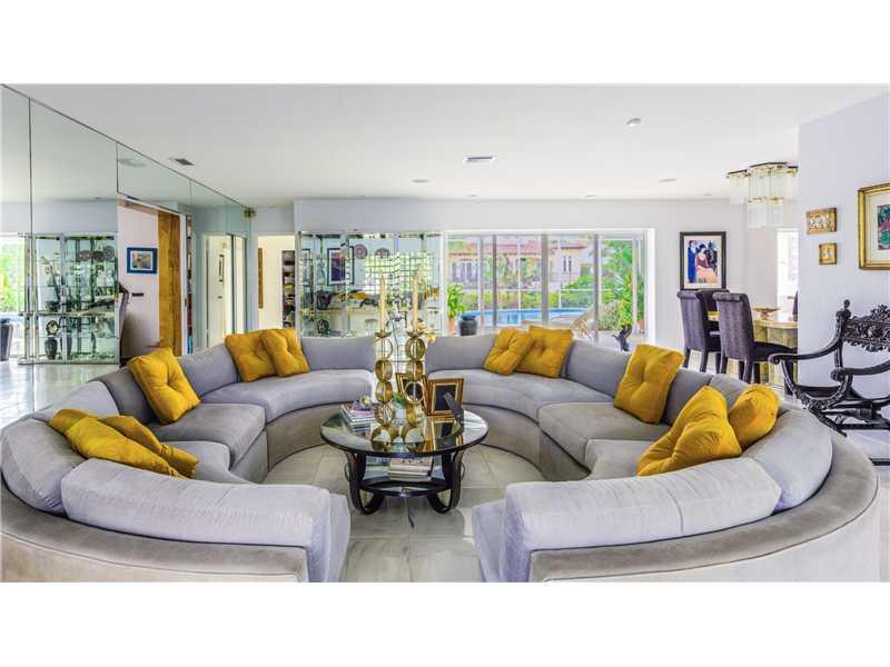 Light, bright and airy 3-bed 3-bath Mid-Century Modern home in gated Sans Souci neighborhood! On a canal only seconds from Biscayne Bay. Open living area has gourmet kitchen with wood cabinets, granite counters and stainless steel appliances. Large master suite with dual sinks and sunken bathtub and shower. Lots of windows and doors unite the interior with magnificent pool area and lush tropical landscaping. Cuban tile, impact windows, 2-car garage. No fixed bridges. Entertain in true Florida style!