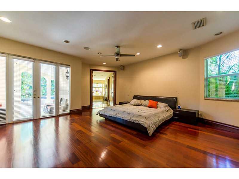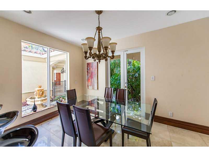 Elegant European style gated villa on oversized lot in South Coconut Grove. Enter into a grand foyer with dramatic staircase & double height ceilings. Light filled living spaces with the finest finishes throughout including Brazilian hardwood & marble flo ors, mahogany doors and impact glass. Expansive main floor master suite & 3 upstairs bedrooms w/ en suite baths. Downstairs staff quarters. French doors open onto covered terraces overlooking 40' heated lap pool surrounded by lush tropical garden.