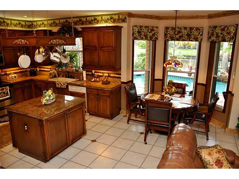 NEW PRICE! Infused with a Victorian Flair, This lake front residence offers exceptional detail and timeless quality. 5 bedrooms, 4 baths and a fabulous gourmet kitchen with integrated appliances and 42" wood cabinets. The family room flows out into the c overed patio. There is crown molding throughout the home with intricate designs. Marble and wood floors come into play with one another. Spacious master bedroom with sitting area and french doors lead out to the balcony with views lake and pool.