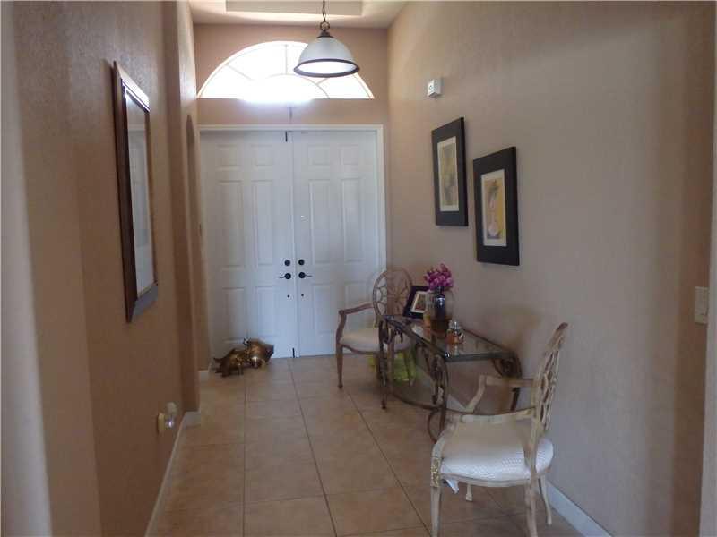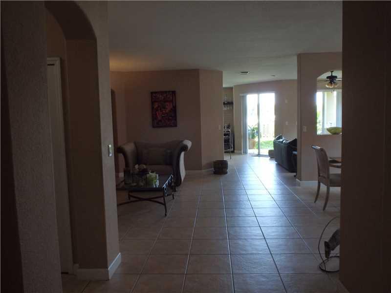 BEAUTIFUL ONE STORY HOME IN EXCELLENT CONDITIONS 4 BEDROOMS, 3 BATHS WITH VERY NICE OPEN LAYOUT, FOYER ENTRANCE LEADS TO LARGE OPEN SPACES OF LIVING, DINNING & FAMILY ROOM. NICE KITCHEN WITH GRANITE COUNTER TOPS AND ADJACENT BREAKFAST AREA. NICE BACK YARD WITH NO NEIGHBOURGS AT THE BACK, THE COMMUNITY IS BUILDING A PARK! TILED FLOORS THROUGHOUT. HURRICANE ACCORDION SHUTTERS. CLUBHOUSE, POOL, GYM TENNIS & BASKETBALL COURT. NEAR MAJOR HWYS, SHOPPING CENTERS AND RATED "A" SCHOOLS.