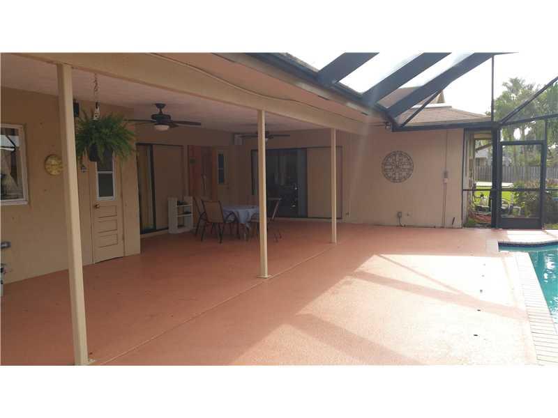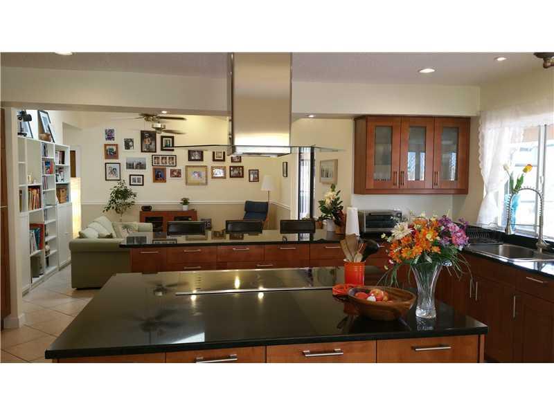 Come see the great home features 4 bedrooms, 2 baths. Very spacious home with great distribution. Upgraded with huge gourmet kitchen that includes double oven, big island in the center, granite counter tops and stainless steel appliances. Newer roof; Upg raded bathrooms, high ceilings, wood floors and tile throughout. Big pool & screened in patio. Many windows are hurricane proof. Located in a quite street. Come make this house your home.
