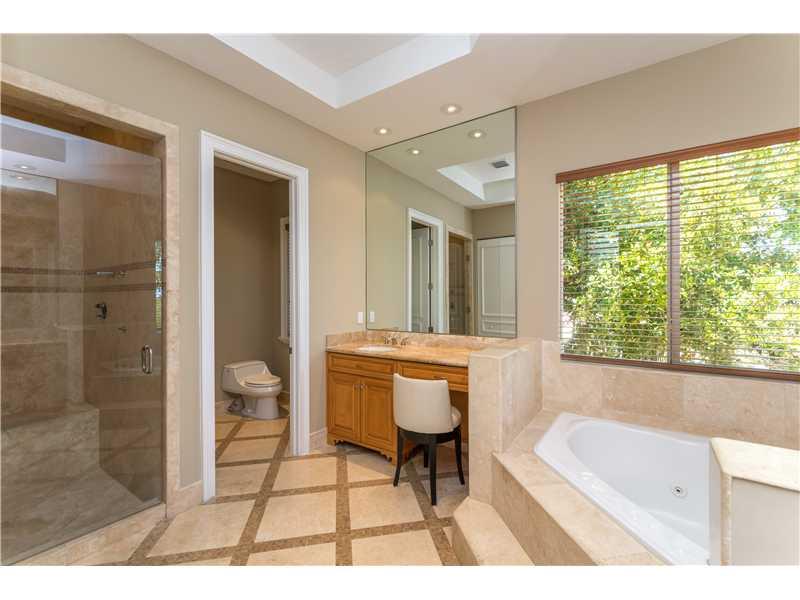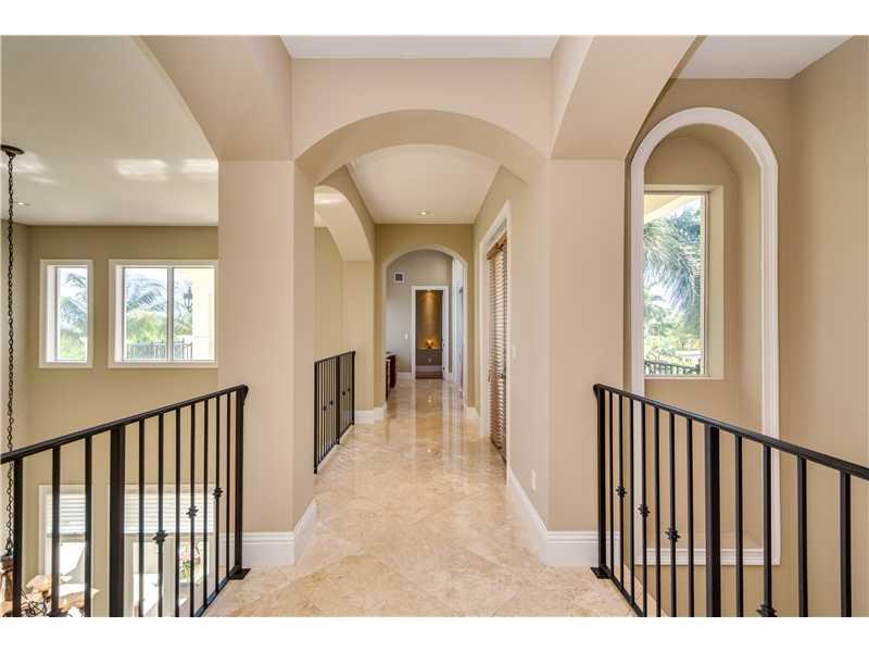Exquisite and elegant! Updated transitional style. High volume ceiling throughout, gleaming marble and hardwood floor. Gracious formal living with fireplace, beautiful dining room, Gourmet chef's kitchen. Lavish master with luxurious bath, all en-suite be drooms with balconies. Stunning pool patio with gazebo. Impact windows, generator, private deed boat slip. Shows like a dream. A must see! Situated in guard gated Hammock Oaks exclusive community.