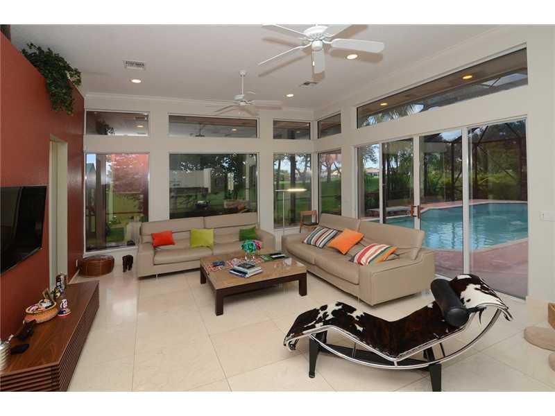 Price Reduction!!Gorgeous 5 Bedroom+Den 4 bath home On Lakefront & Golf Course Lot in the exclusive Community of The Greens. This home has a circular driveway with 3 car garage. Beautiful marble floors through out living areas, volume ceilings, crown mold ings, Formal dining room. Kitchen with granite counter tops, new oven, kitchen nook has new hurricane impact glass. Elegant Master Suite-Separate Jacuzzi & Shower. HUGE SCREENED POOL/PATIO, Solar Powered Heating.