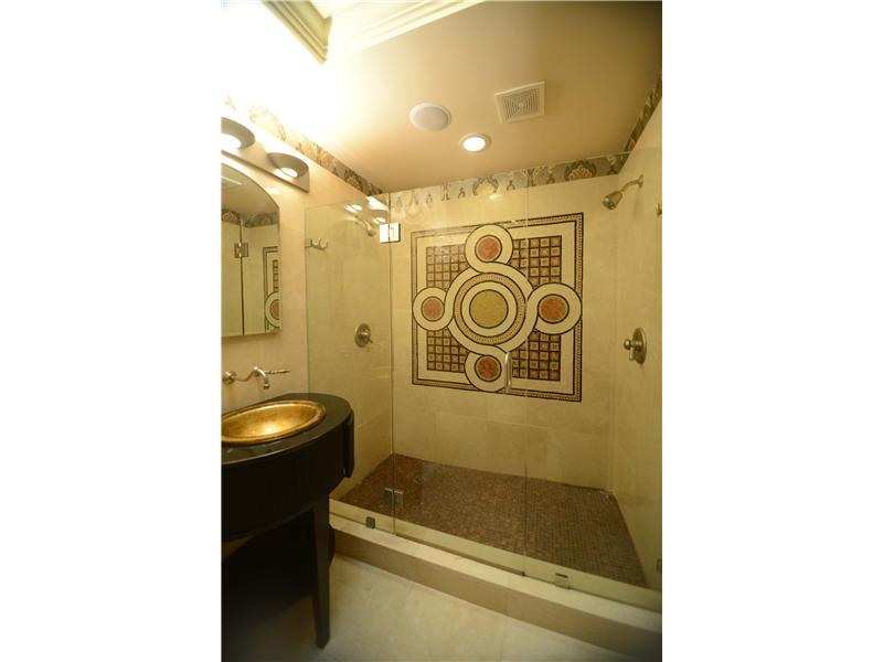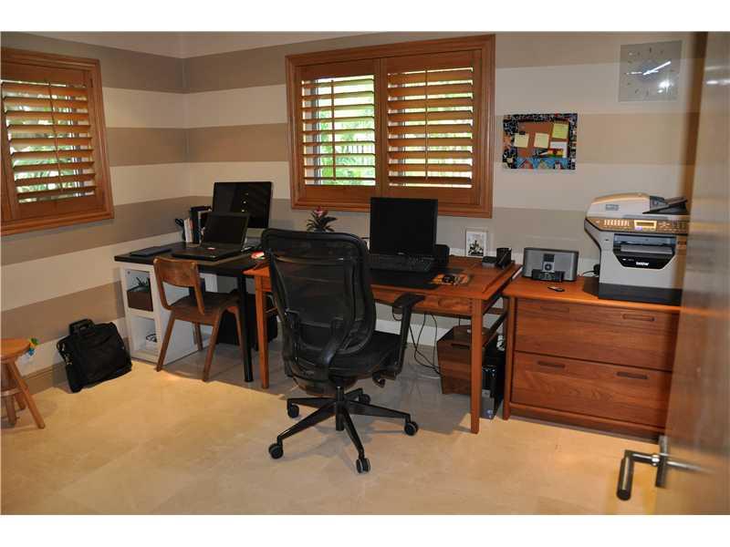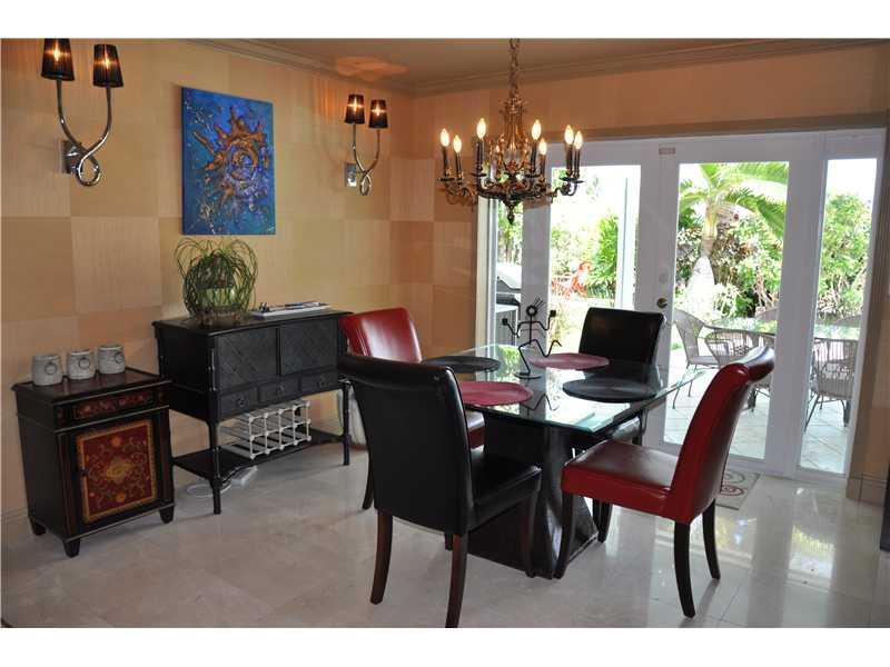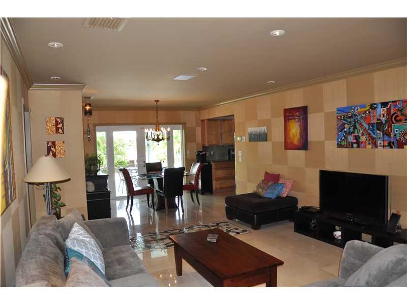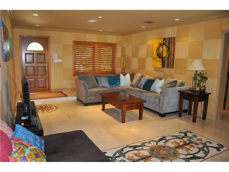 Beautiful three bedroom two bath designer home with family/media room. Crown molding & marble floors with mosaics insets throughout. Updated gourmet kitchen w/dbl ovens. Recessed lighting. Home sound system with recessed speakers individual controls in e ach room & outside. Spacious covered patios in front & back yards. Professionally designed landscaping & exterior lighting. New Impact windows with Interior wooden shutter window treatments throughout. Private Pool deck & dock has nice views of waterway
