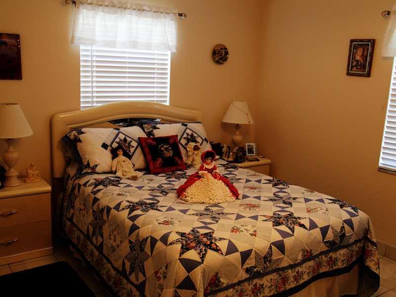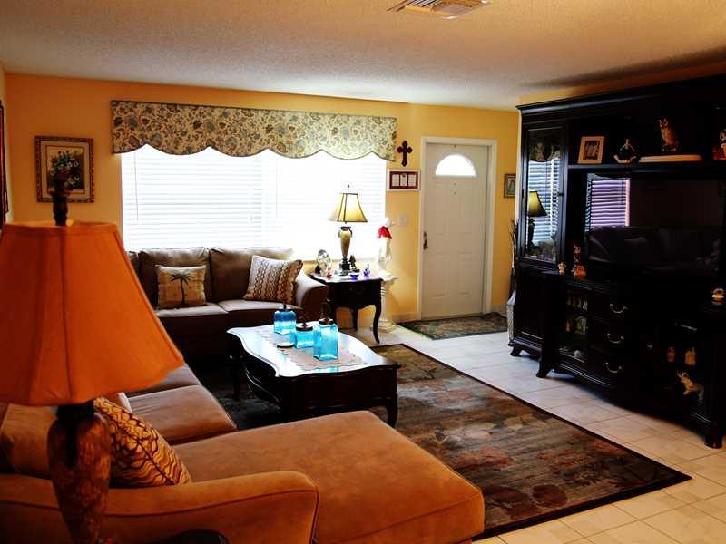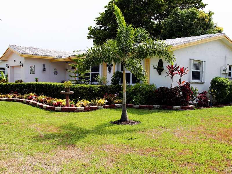 Stupendous home on one of the most beautifully landscaped lots. Remodeled custom kitchen and baths, tiled interior, extra den/guest/sewing room, spa shower in master, all newer windows, accordion hurricane shutters, decorator lighting and fixtures, beau tiful stamped concrete double driveway and front porch - no steps, handicap accessible. Newer washer & dryer, new a/c 2015. Set back on lovely block with palm trees and garden views. (Furniture avail. separately). This is the one you've been waiting for!